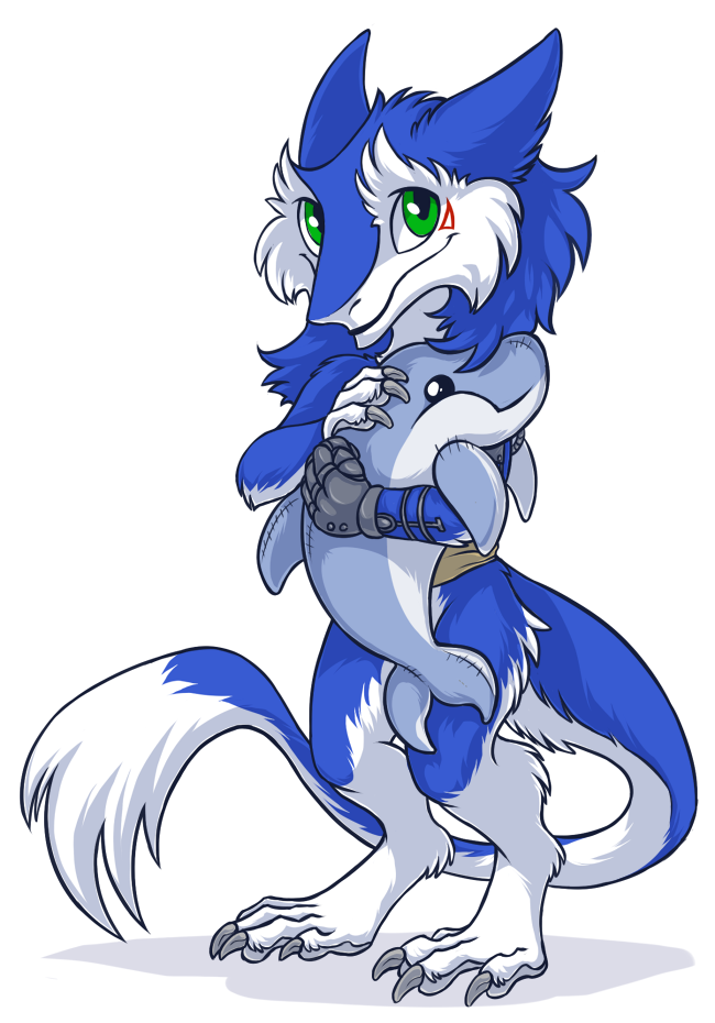 Alors, c'est pas un Blåhaj que je tiens ici. C'est une peluche de dauphin, parce que j'ai toujours adoré les dauphins. J'étais tombé sur cet artiste parce qu'il dessine beaucoup de sergals, et j'avais bien aimé son style graphique.
