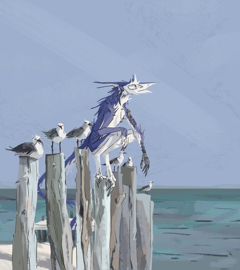 On peut ici voir Renn dans sa phase contemplative, perdu dans ses pensées, méditant sur sa vie. Ah, et des mouettes aussi.